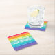 Schöner Regenbogen Weihnachten Party Untersetzer in hübschen kühnen Farben, die lautet Be Merry und Bright. Freuen Sie sich auf eine Gay Pride-Feier, die LGBTQ-Familien begeistert.