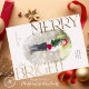 Weihnachtskarte, individuelles Foto mit rosafarbenem Rahmen und Merry und Bright elegante Goldtypografie. Personalisieren Sie diese Karte ganz einfach, indem Sie Fotos durch Ihre eigenen ersetzen und die Textnachricht und den Familiennamen anpassen.