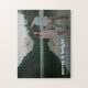 Ein stilvolles, modernes Foto-Jogsaw-Puzzle mit einem kühlen Retro-Typografie-Zitat "frry & bright" in Weiß. Die Begrüßung, der Name und die Nachricht lassen sich einfach für eine persönliche Touch anpassen. Ein trendiges, minimalistisches und zeitgenössisches Design, das sich in dieser Ferienzeit auszeichnet! Das abgebildete Bild dient nur zur Veranschaulichung, um durch Ihr eigenes Foto ersetzt zu werden. Das Bild eines glücklichen jungen Paares, das auf einem Strand am Ufer eines Sees mit einem schönen Kiefernwald und Berglandschaft spaziert.