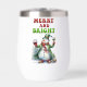 Ein lustiges und fröhliches Weihnachtsdesign zeigt einen fröhlichen Schneemann in einem langen grünen Mantel mit passendem Oberhut, rotem Schal und Fäusten. Er hält ein Glas Rotwein in der einen Hand und Weißwein in der anderen. Der festliche rote und grüne Text lautet: "Fröhlich und hell." Dieses Design ist auf einer Vielzahl von Produkten erhältlich, sodass es ein perfektes Geschenk für Weinliebhaber ist.