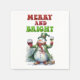 Ein lustiges und fröhliches Weihnachtsdesign zeigt einen fröhlichen Schneemann in einem langen grünen Mantel mit passendem Oberhut, rotem Schal und Fäusten. Er hält ein Glas Rotwein in der einen Hand und Weißwein in der anderen. Der festliche rote und grüne Text lautet: "Fröhlich und hell." Dieses Design ist auf einer Vielzahl von Produkten erhältlich, sodass es ein perfektes Geschenk für Weinliebhaber ist.