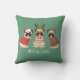 Niedliche Abbildung von drei Mops-Hunden in Weihnachtsbekleidung.