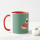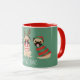 Niedliche Abbildung von drei Mops-Hunden in Weihnachtsbekleidung.