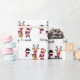 Dieses lustige und niedliche Weihnachtsverpackungspapier hat einen Schneemann, Rentier und den Weihnachtsmann mit Masken. Es gibt karierte Büffelmuster und schöne Rot-, Weiß-, Schwarz- und Brauntöne.