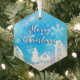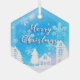 Merry Xmas Blue White House Snow Ornament Aus Glas