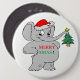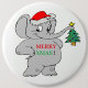 " MERRY XMAS " GRAY ELEPHANT HOLDING DEKORATED CHRISTMAS BAUM IN IHREM TRUNK UND TRAGEN EINE ROTE WEIHNACHTSMANNMÜTZE