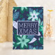 Diese Weihnachtskarte zeichnet sich durch ein modernes botanisches Blumenmuster-Design mit MERRY XMAS-Nachricht auf der Vorderseite aus. Personalisieren Sie die Innenseite der Karte mit Ihrem eigenen Text oder löschen Sie sie für eine leere Karte.
