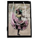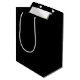 Mittlere schwarze glatte Geschenktasche mit einem Vintagen Bild, auf der Front, eines reizenden Cancantänzers in einem lacy rosa, aquamarines und gelbes Cancankostüm und ein breit-geströmtes aquamarines und des Weiß plumed Hut. Sehen Sie die gesamte Cancan-Geschenk-Taschensammlung im SPEZIELLEN TOUCHS | Gastgeschenkeabschnitt.
