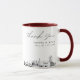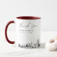 Moderne Mesa Skyline Kaffee Tasse Gunst Geschenk mit "Dankeschön" Skript. Das Design zeigt eine atemberaubende Skizze mit der Möglichkeit, Ihre Namen und den genauen Standort anzupassen. Geben Sie das Zazzle Design Tool für zusätzliche Anpassungen ein.