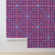 Dreieckige Maschenmuster in Blues und Rot.