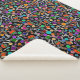 Ein lebendiges Muster mit bunten Knöpfen, Löffeln, Scheren, Nadeln, Naht-Rippern, Timbles und schwarzen Tomaten-Button-Kissen. Perfektes Geschenk für den Quilter oder für den nahtlosen.