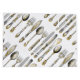 Eine schöne Illustration im IMITAT Gold und Silber der Messer, der Gabeln und der Löffel mit Arumlilie, Rosen und Grasradierungen auf ihnen. IDEAL FÜR - Köche, Cateringspezialisten, Restaurants, Hotels, Erholungsorte und kochen Schulen