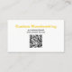 An dieser Visitenkartenfront befindet sich ein nahes Foto eines gelben Messbandes. Auf der Rückseite befinden sich mehr Vorlagentext und ein QR-Code für den Platzhalter. Personalisieren Sie die Vorlage, entfernen Sie jeden Text oder klicken Sie auf Anpassen, um den gewünschten Stil, die gewünschte Größe und Schriftart auszuwählen. ERSETZEN Sie den QR-Code durch Ihren. Dieses Visitenkartendesign kann gut für die Restaurierung von Holz, Tischler, Bauarbeiten, Handwerker oder vielleicht für Ihr Unternehmen funktionieren.