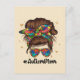 Auf dieser Postkarte finden Sie eine Frau mit einem unordentlichen Knochen mit einer Achtungsfarbe für Autismus und das Wort "Autismus Mutter". Es ist perfekt für Mütter mit Autismus oder Familien von autistischen Personen.