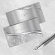 Der silber-metallische Hintergrund und der Glitzer dieses Designs werden horizontal durch eine weiche Welle aus verdrilltem Metall geteilt, die dieser Visitenkarte eine luxuriöse Aura verleiht. Dieses Design funktioniert für jeden beruflichen: Veranstaltungskoordinatoren, Organisatoren, Finanzberater, Anwälte, Ästhetiker, etc.; jeder, der eine Karte mit auffallender Eleganz will. Fügen Sie Ihre persönlichen Kontaktinformationen auf der Rückseite mit der angegebenen Vorlage hinzu. Hier in Standard-Visitenkartengröße dargestellt. Siehe ID807 , um weitere Farben und Größen für dieses Design zu sehen.