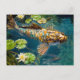 Metal Koi in Pond and water lilith Postkarte