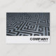 Eine attraktive, moderne Visitenkartenvorlage mit 3D-Darstellung eines metallischen Labyrinths. Geeignet für eine Vielzahl von Unternehmen. Firmenname auf der Vorderseite mit Namen und Kontaktdaten auf der Rückseite. Hinweis: Das Foto kann auch durch ein eigenes Bild ersetzt werden. Diese Vorlage kann daher leicht an viele Verwendungszwecke angepasst werden. Kann konventionell aussehen oder gemacht, um künstlerischer und weniger konventionell aussehen. Ideal für Bands und Animateure.