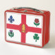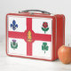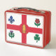 Montreal flag lunchbox, patriotic Canada lunch case, metal lunchbox with city flag, stainless Montreal food container, Montreal cultural symbols lunchbox, fleur-de-lis rose thistle shamrock design, red cross flag lunch case, Canadian maple leaf lunchbox, Montreal school supplies, civic pride food box, Montreal heritage lunch accessory, Canada flag gift idea, Quebec patriotic lunchbox, multicultural Montreal flag item, symbolic Canadian lunch carrier, lunch container with city identity, Montreal fan lunch case, patriotic travel lunchbox, Montreal themed food storage, Canada city flag stainless box