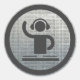 Ein cooler DJ-Aufkleber. Ein metalischer Hintergrund mit den Buchstaben DJ und einem schwarzen Piktogramm eines DJ hinter seinen Rädern.
