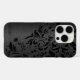 Schwarz metallisches gebürstetes Aluminium mit elegantem, schwarzem Blütenlace.Individualisierbares und optionales Monogramm