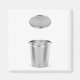 Leere silberne Mülltonne mit Deckel auf weißem Hintergrund
