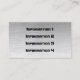 Berufliches Silber gebürstete metallische Blick-Karten. Eine gebürstete Metalloberfläche im Blickchrom des rostfreien Stahls ist eine mutige, einzigartige, schlichte und starke Geschäftskarte. Silbernes Metallplatten steht heraus freundlich, um Ihren Firmennamen oder Ihren Namen auf der Front vorzuführen. Fertigen Sie leicht mit Ihren eigenen Informationen auf der Rückseite der Karte besonders an. Verwenden Sie die perfekte Schriftartart der Beschriftung des mutigen Schwarzen mit Schrauben im Entwurf, oder ändern Sie leicht die Schriftartart. Die perfekte berufliche schauende Karte besonders für die industrielle, Bau- und Gebäude-Berufe und erfahrenen Handel. Gedruckt auf Papier, nicht tatsächliches Metall. Eine starke Geschäftskarte, die heraus von der Erholung steht.