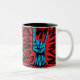 Eine Kaffee-Tasse, die 3 verschiedene Metall-/Teufel-Hornfinger hat, färbt.