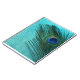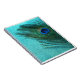 Große Pfauenfeder noch Lebensfotografie. Der glänzende aqua-blaue Hintergrund verleiht dem Foto mehr Tiefe. Ideal für Menschen, die Liebe von Pfauen und Vögeln.