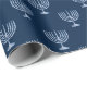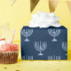 Hier haben wir ein Packpapier, das eine metallische filigrane Menorah auf einem dunkelblauen Hintergrund zeigt. Dieses Papier ist in verschiedenen Größen erhältlich und passt zu anderen Verpackungspapieren, Papiertüchern, Geschenktaschen und einer Grußkarte. Dies ist sicher eine perfekte Ergänzung zu Ihren Geschenken in dieser Ferienzeit.