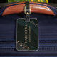 Dieses Metallic Geode Gepäckanhänger ist perfekt für eine moderne, einzigartige Braut. Das Design besticht durch goldene Elemente auf schwarz-dunkelgrünen Texturen. Ein einzigartiges und trendiges Design.