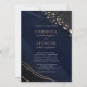 Diese Metallic Geode Hochzeitseinladung ist perfekt für eine moderne, einzigartige Braut. Das Design besticht durch goldene Elemente auf schwarz-dunkelblauen Texturen. Ein einzigartiges und trendiges Design.