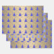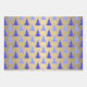 Dieses einzigartige, moderne, handgezeichnete, niedliche Design zeichnet sich durch Weihnachtsbäume in Blau- und Winkelfarben auf dem gelben goldenen Hintergrund der Imitate aus. Dieses Geschenkpapier ist eine ausgezeichnete Ergänzung zu Ihren Winterferien Feiern