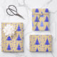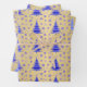 Metallic Gold Blue Christmas Trees Muster Geschenkpapier Set
