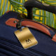 Elevate your travel with our luggage tag design featuring a simple gold background with customizable black typography.
