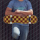 Make a bold statement with this metallic gold and maroon square style skateboard, designed for riders who like clean geometry with rich color contrast. The striking layout delivers a modern, premium look while remaining versatile for cruising or display. A stylish blend of attitude and simplicity, perfect for urban riders and collectors alike.