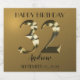 Alles Gute zum 32. Geburtstag. 32 Jahre. Goldenes Metalletikett.