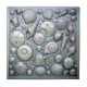 A treasure trove of the deep, this highly detailed faux bas-relief tile features an intricate collection of seashells, conchs, sand dollars, and spiraled nautilus forms nestled among gentle waves. The composition and texture mimic an expensive sculpted metal plaque. Finished in the signature iridescent sheen, the tile reflects light with sophisticated shifts in color, emphasizing the depth and detail. This stunning piece is perfect for a full backsplash or a dramatic, textured accent panel. Search ID1223 to see other marine elements in this dramatic metallic series. Note: design may contain generative content.