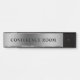 Conference room door sign design featuring a shiny, smooth silver background and custom black text.