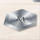 Revamp your drinking accessories with our stunning coaster design, showcasing a shiny metallic silver, stainless steel look with a customizable monogram.