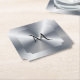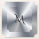 Revamp your drinking accessories with our stunning coaster design, showcasing a shiny metallic silver, stainless steel look with a customizable monogram.