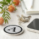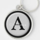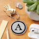 Personalisieren Sie diesen silbermetalen Look Knopf in schwarz runden Schlüsselanhängern mit jedem Nachnamen und Single benutzerdefiniertes Monogramm.
