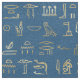 Metallische ägyptische Hieroglyphen auf blau Stoff