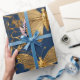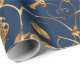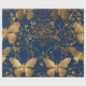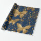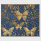 Metallische blaue Schmetterlinge mit Goldweinen Geschenkpapier