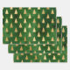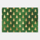 Metallische goldene Weihnachtsbaume auf Grün Geschenkpapier Set