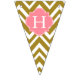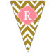 Metallisches, Zickzack Muster mit rosa Akzent Babyduschbändchenfahne. Das Design besticht durch ein Zickzack Metallmuster in Gold und Weiß und eine rosa Vierfolie mit Ihrem Baby-Duschtext.