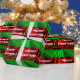 Ist hier etwas fantastisches Weihnachtsthemed Verpackungspapier mit einem coolen roten und grünen metallischen Folienblick, der sprengt Streifenmuster mit "frohen Weihnachten!" (oder ändern Sie einfach den Text, um zu personifizieren), in einem wiederholenden Muster gänzlich. Einzigartig, Spaß und festliches schönes Feiertags-Packpapier nahtlos mit Ziegeln gedeckt, um Ihr Feriengeschenk schön stellt einzuwickeln für jene spezielle Familie und Freunde dar.