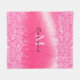 Metallischer Neon Fushia rosa Treibleiter Glitzer Imitat Folie bedruckt oben und unten, mit einer benutzerdefinierten Monogram zentriert auf dieser weichen und gemütlichen Decke