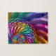 Eine Spirale der metallischen Regenbogenfarben kräuselt sich in die Mitte dieses Entwurfs.