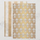 Ein elegantes Muster von Flöten des Lys auf einem metallischen goldenen Farbverlauf. Die Rückseite des Papiers ist gestreift in metallischem Gold und antiken Weiß. Ideal für Kunsthandwerk, Zeitschriften, Kartenherstellung, Schrottbücher.