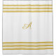 Metallic Gold Monogram und Horizontal Bars Pattern auf dem weißen Duschvorhang fügen Ihrem Badezimmer eine klassische elegante Note hinzu.